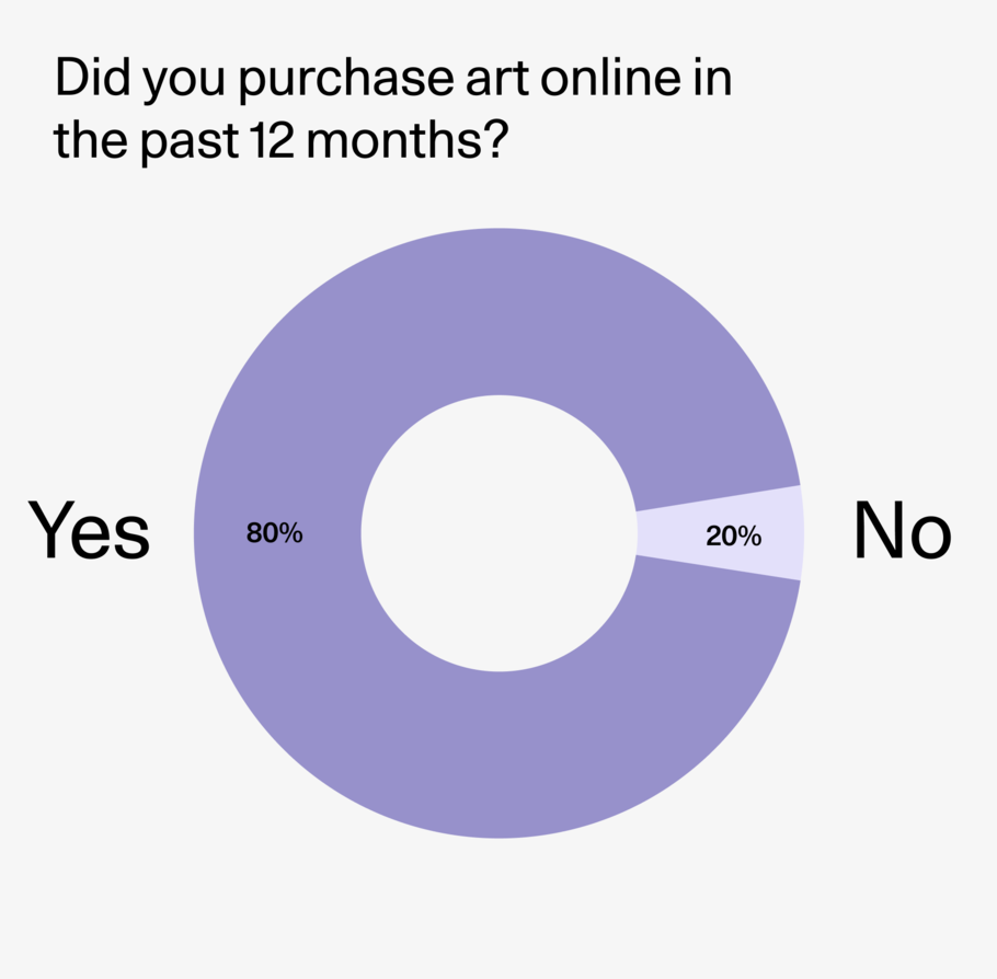 As plataformas de arte online não são uma ferramenta suplementar, mas sim uma parte essencial do percurso de coleção de arte para a grande maioria dos entrevistados. Cerca de 80% compraram arte online nos últimos 12 meses, o que representa um aumento de quatro pontos em relação à pesquisa do ano passado.